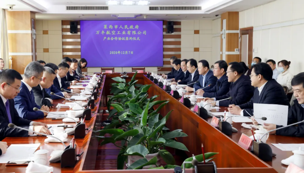 12月7日,萬豐集團(tuán)陳濱總裁到訪青島萊西市,與萊西市市委書記莊增大,市委副書記、市長王清源,副市長徐一冰進(jìn)行了親切會(huì)談。雙方簽署了產(chǎn)業(yè)合作協(xié)議,約定建立戰(zhàn)略合作關(guān)系。萊西市相關(guān)局辦、店埠鎮(zhèn)主要領(lǐng)導(dǎo)及萬豐航空?qǐng)F(tuán)隊(duì)參加會(huì)談并見證簽約儀式。
