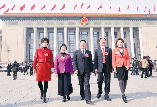 3月5日上午,五位紹興全國人大代表錢建民、車曉端、葉飛帆、陳愛蓮、徐愛華步出北京人民大會(huì)堂。當(dāng)日,第十二屆全國人民代表大會(huì)第一次會(huì)議在北京人民大會(huì)堂開幕。(特派記者 袁云 發(fā)自北京)